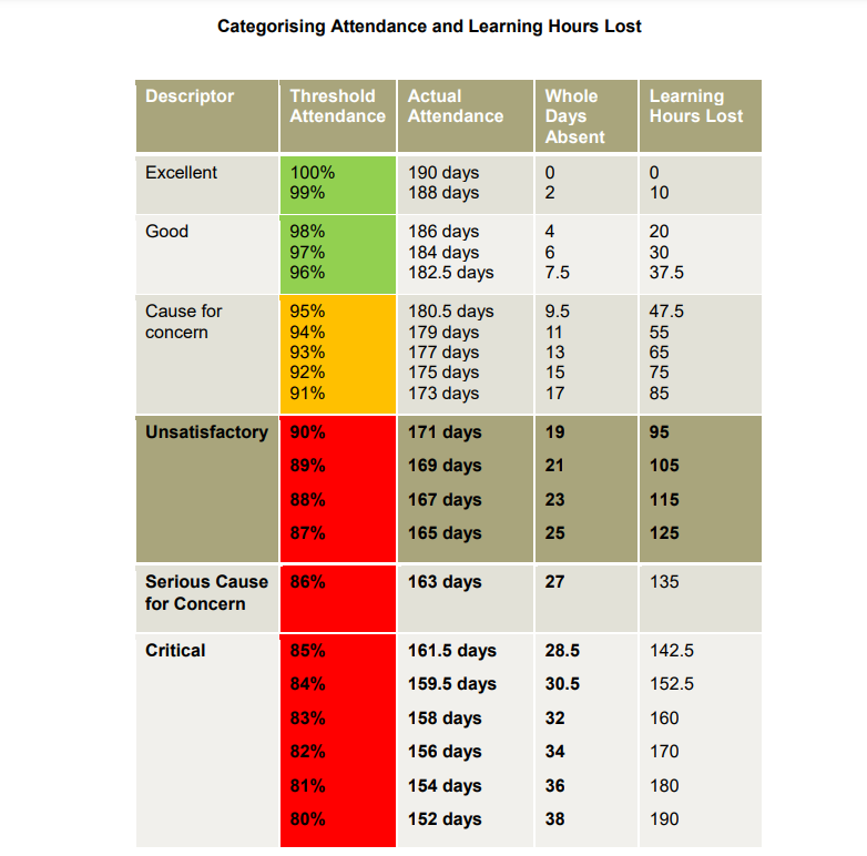 If your child's attendance falls lower than 90%, you will be asked to attend an attendance meeting to improve your child's attendance.